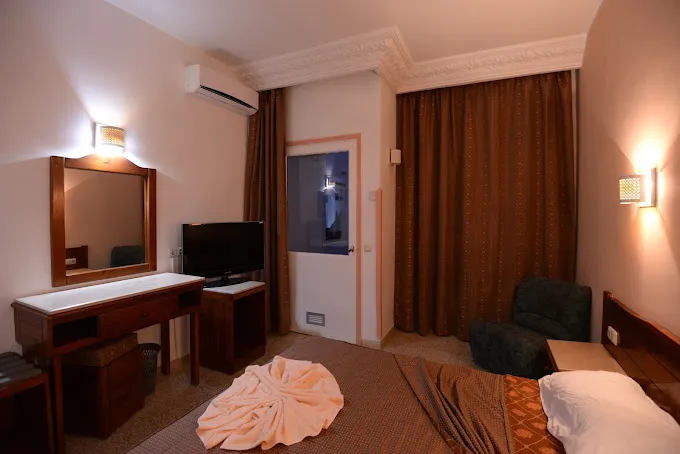 | Vacances dans l'une des 106 chambres dont 5 suites qui sont à la fois accueillantes et fonctionnelles. Elles sont équipées de climatisateurs avec réglage individuel, téléphone, balcon, TV et satellite, terrasse et salle de bain. |
