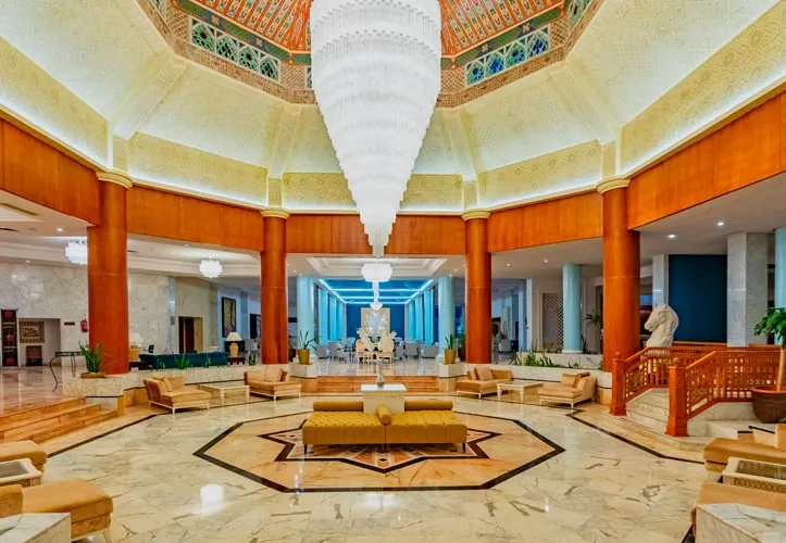 Situé à 3 Km du centre de Port El Kantaoui, directement en bordure d'une belle plage de sable, le Riu Bellevue Park est un bel hôtel club à l'architecture réussie doté d'un cadre verdoyant privilégiant l'espace. L'hôtel a été entièrement rénové en 2006 et les chambres sont toutes vue mer latérale ou frontale. Un hôtel club parfaitement adapté pour les familles avec des chambres familles pouvant recevoir jusqu'à 4 adultes. Situation : Directement au bord de la plage de sable fin. A 3 Km du port de plaisance de Port El Kantaoui et à 10 Km de la ville de Sousse. Transfert depuis l'aéroport de Tunis : 1h30 environ (140 Km) / Depuis l'aéroport de Monastir : 30 mn environ (21 Km).