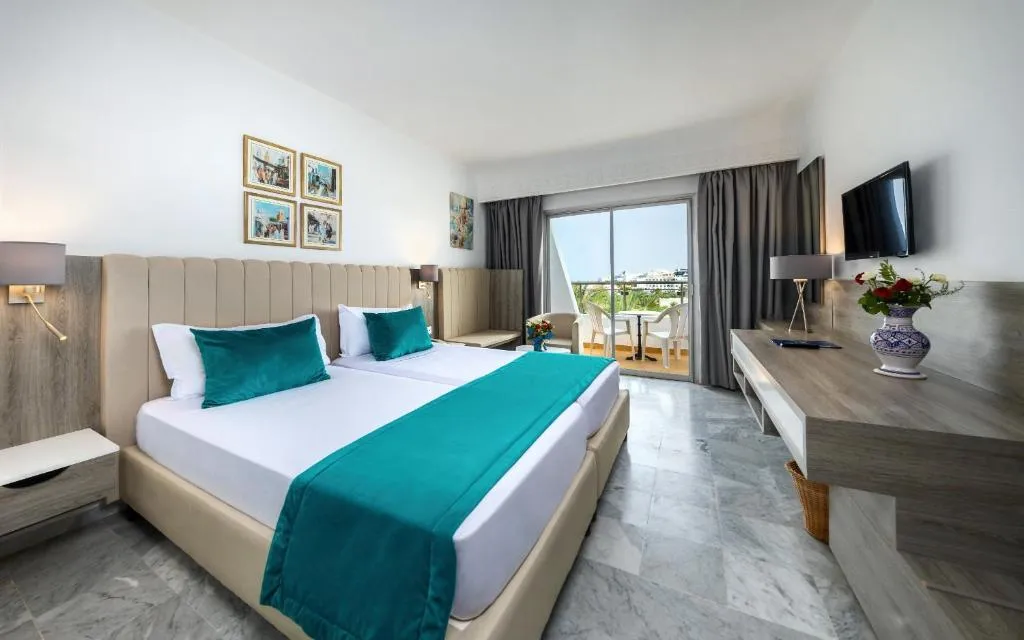 Toutes les chambres climatisées de l'Hotel Marhaba Beach sont dotées d'une salle de bains privative, d'une télévision par satellite et d'un balcon avec vue sur le jardin ou la mer.