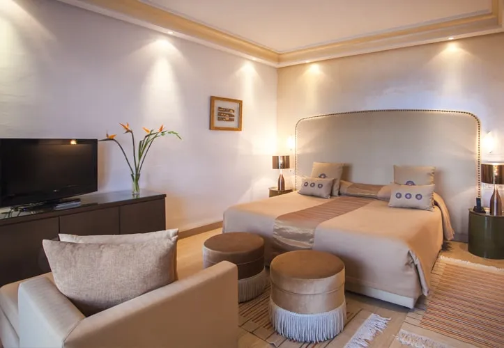 L’hôtel possède 281 chambres dont la plupart donne une vue imprenable sur la mer. Les chambres sont réparties sur tout l’établissement et présentes toutes un confort total et une luxe unique et très satisfaisante. Les chambres sont équipées de chauffage central et air conditionné. Le confort proposé comprend pour chaque chambre une télévision avec satellite, une salle de bain comprenant une douche, et un sèche-cheveux une baignoire, une terrasse ou une loggia, un WC, un coffre payant pour utilisation, un lit pour bébé à la demande, et un mini-frigidaire qui est aussi payant. Les chambres sont de tous les types : simple, double, triple et même quadruple. Outre les chambres disposant des équipements nécessaires, l’hôtel possède aussi des bungalows et des chambres qui peuvent être aménagées spécialement pour les handicapés. Des suites sont aussi mises à la disposition de la clientèle, elles sont au nombre de cinq. Chaque suite est bien équipée et de façon très luxueuse. Une suite de prestige est aussi disponible, très spacieuse elle offre un équipement de très haut standing allié avec un décor très moderne.