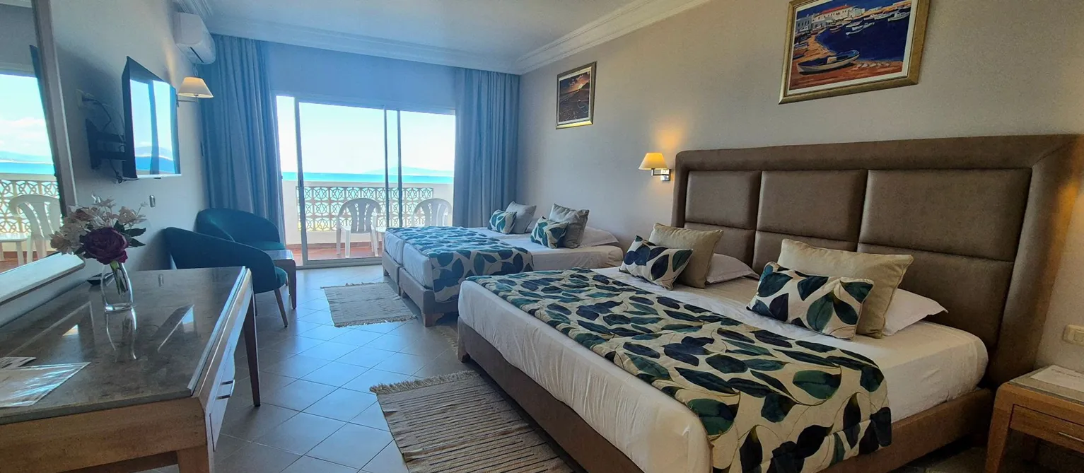 L'hôtel dispose de chambres spacieuses lumineuses et agréablement décorées avec balcons; vue sur mer, piscine et foret sont équipées d’air conditionné, téléphone, TV satellite, salle de bain avec baignoire, sèche cheveux et WC indépendant, 6 suites junior et 1suite présidentielle.