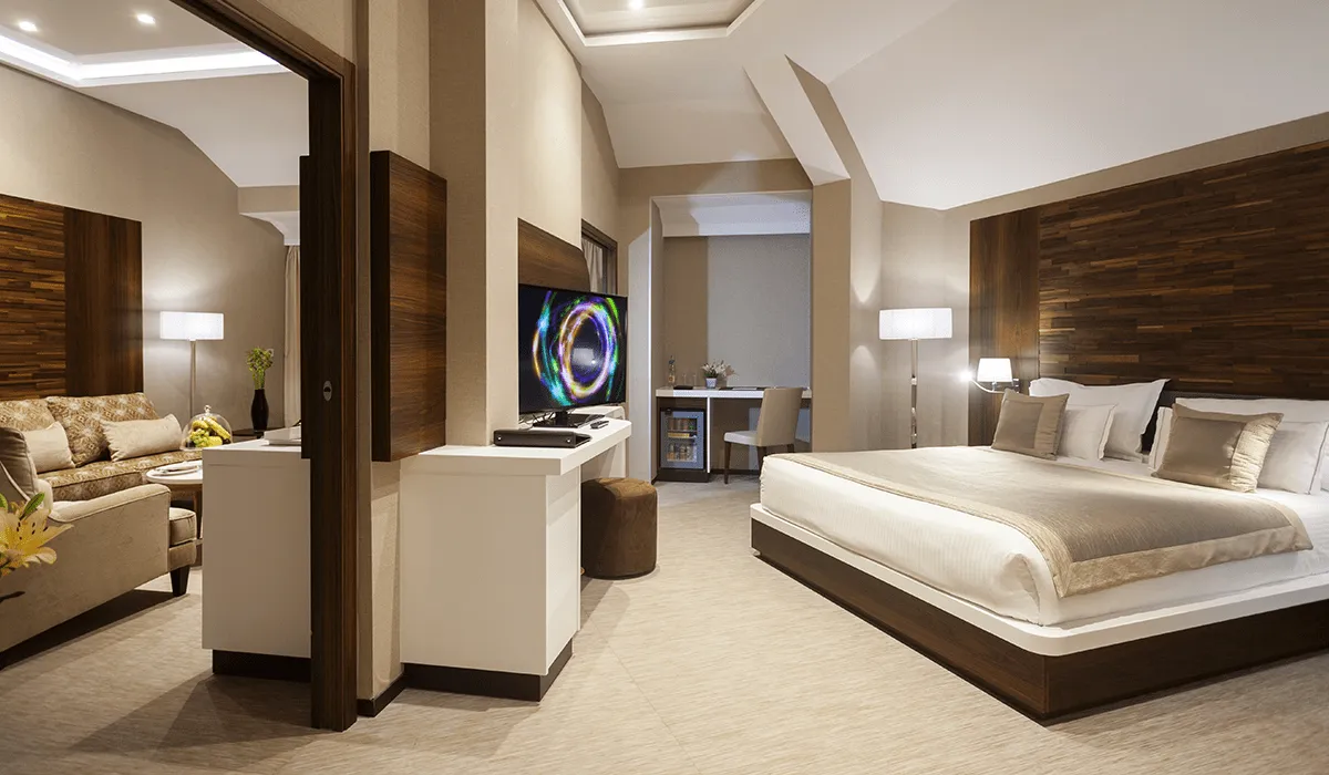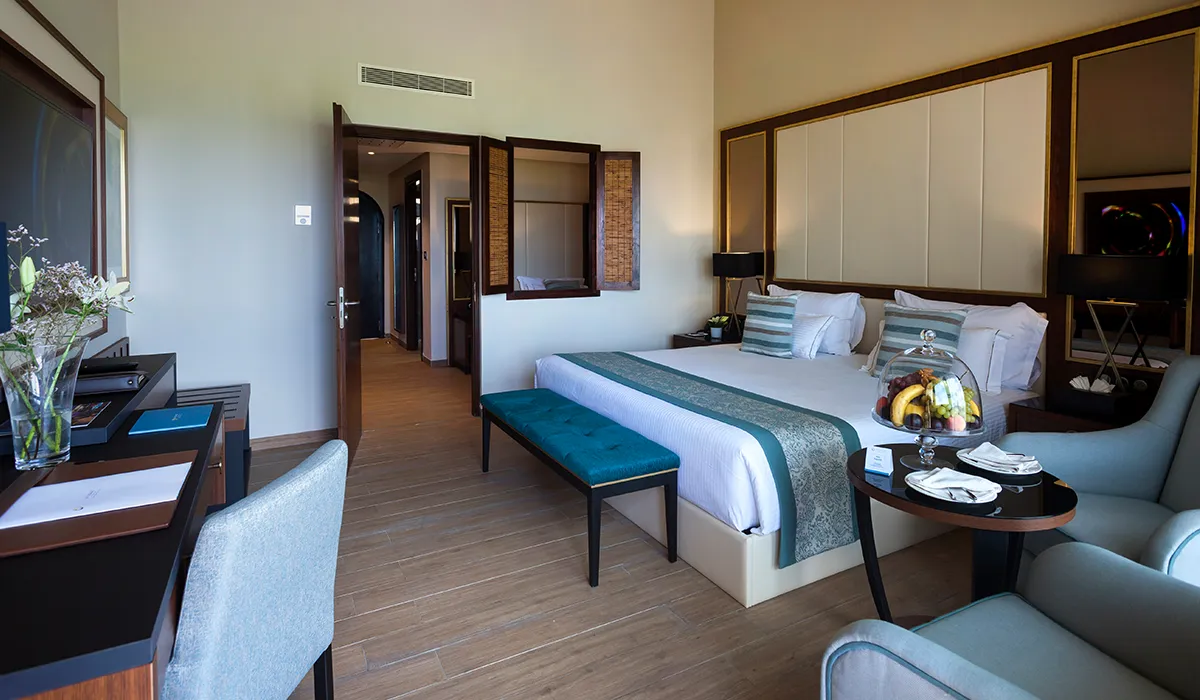 Profitez de l'ensemble des chambres de luxe dans ces chambres bien aménagées, dont un accès Internet haut débit et télévision LCD 40 pouces. Divertir ou vous détendre dans la solitude suites somptueuses dotées plans d'étage spacieux et des privilèges spéciaux tels que le fax gratuit et l'utilisation de l'ordinateur portable et le transport vers et depuis l'aéroport. Conçu avec l'opulence et le confort à l'esprit, chaque Suite Royale dispose d'œuvres d’arts exquis, une chambre spacieuse, salle de séjour, salle à manger, et un jacuzzi privé.