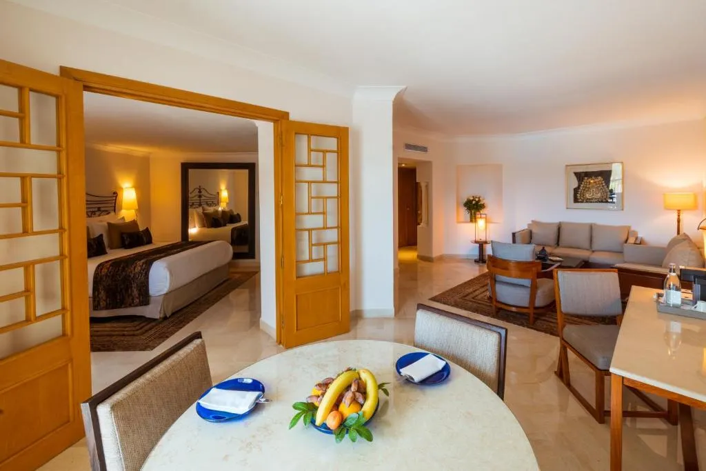 Les chambres spacieuses de la Résidence Tunis comprennent toutes un coin salon avec une télévision à écrant LCD et un lecteur DVD. Elles possèdent en outre un balcon individuel offrant une vue sur la mer ou sur le jardin luxuriant. Tous les logements disposent également de la climatisation ainsi que d'une salle de bains privative pourvue d'une baignoire. La Résidence Tunis satisfera tous les palais grâce à ses salades saines et légères, ses fruits de mer frais et ses plats tunisiens traditionnels. Les restaurants de l'hôtel proposent une cuisine du monde entier, y compris des spécialités de Chine ou de la Méditerranée. Lors de votre séjour, vous bénéficierez de l'accès gratuit à un luxueux centre de remise en forme, de thalassothérapie et de spa d'une surface de 3 500 m². Le personnel de l'hôtel est disponible 24h/24 pour vous aider à réserver des soins ou des loisirs. Cet hôtel se trouve à 15 km de l'aéroport international de Tunis-Carthage ainsi qu'à 5 km de Carthage et de Sidi Bou Said.